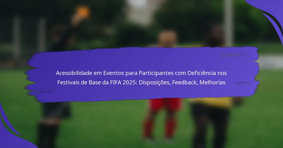A FIFA está comprometida em melhorar a inclusão nos Festivais Grassroots de 2025, implementando uma série de medidas destinadas a garantir acessibilidade para todos os participantes, particularmente indivíduos com deficiência. Estas iniciativas focam na criação de um ambiente inclusivo através de programas direcionados, ações comunitárias, formação de pessoal, coleta de feedback e parcerias com organizações de defesa.